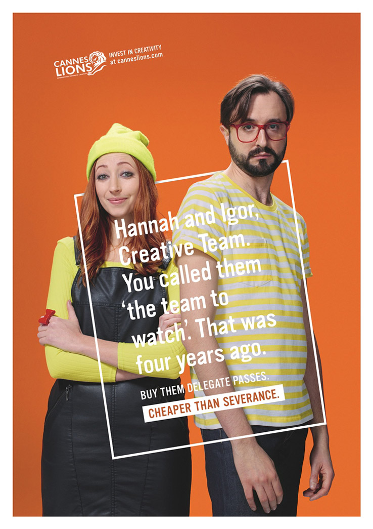 U susret najprestižnijem svetskom festivalu advertajzinga Cannes Lions koji se održava od 21. do 27. juna ove godine u Kanu, predstavljena je nova promotivna kampanja. Na iznenađenje mnogih, kampanja poziva ne tako uspešne kreativce da dođu na najbolji festival advertajzinga. Na neuobičajen i duhovit način kampanja se obraća menadžerima, ali i onima čiji poslovni učinak u kreativnoj industriji nije zadovoljavajući. Kampanja propagira neprijatan, ali ubedljiv stav da je istinsko ulaganje u kreativnost slanje zaposlenih koji nisu dovoljno efikasni, da budu delegati na festivalu kako bi stekli nove veštine, poručujući da je to "jeftinije od otpremnine".