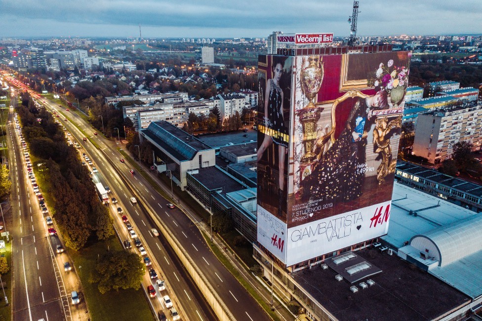 Vjesnikov neboder u Zagrebu u petak je zasijao u novom odelu. Doslovce. Naime, H&M je za promociju nove kolekcije odeće Giambattista Valli x H&M 67-metara visok neboder "obukao" sa svih strana u ogromno platno na kom se nalaze fotografije novih modnih krpica poznatog trgovačkog lanca. Poduhvat je realizovao UM Zagreb u saradnji sa provajderom Fini oglasi i zahvaljujući tom projektu mogli bi ući i u Guinnessovu knjigu rekorda.